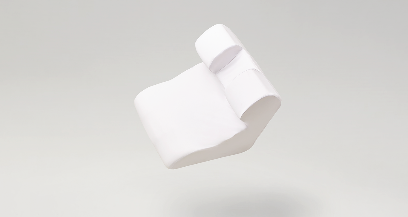 Inspired by the High Fowler medical position, it positions the upper body to help keep gravity from collapsing the airway.